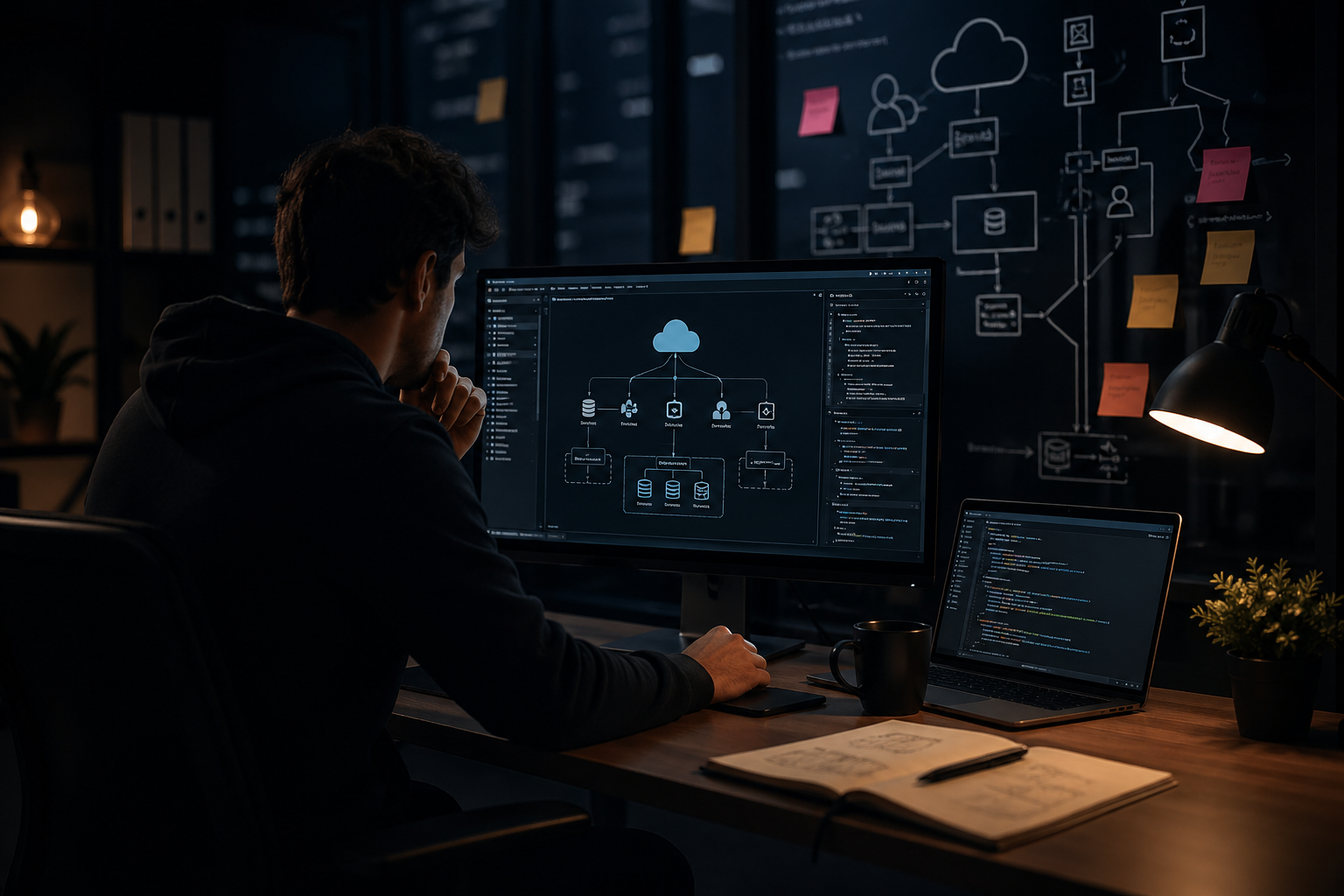 - UX + architecture — Design screens and define data models, integrations, and security boundaries.